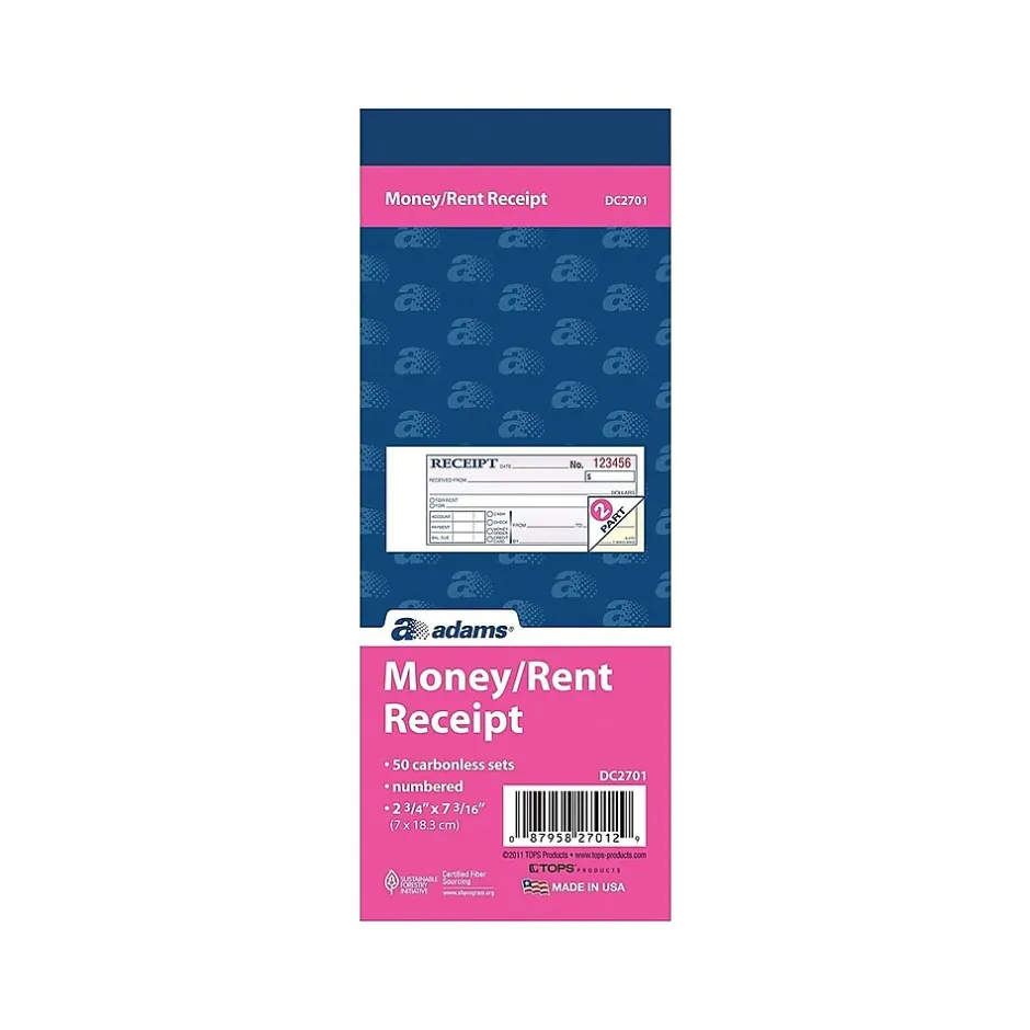 Keep permanent records of payment transactions with these receipt books. The two-part design produces duplicate copies of each record, and the consecutive numbering provides systematic tracking of transactions. These Adams general purpose receipt books are carbonless for neat recording, and a blank space on each form allows stamping of company names.
