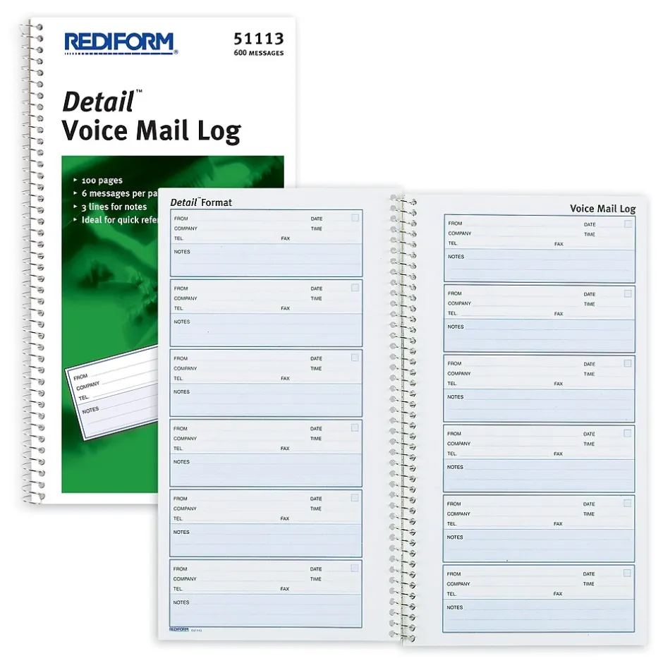 Take thorough phone messages and log calls with ease utilizing the Rediform® Detail Voice Mail Log Book. Rediform® brand business forms represent the most professional way to do business.
