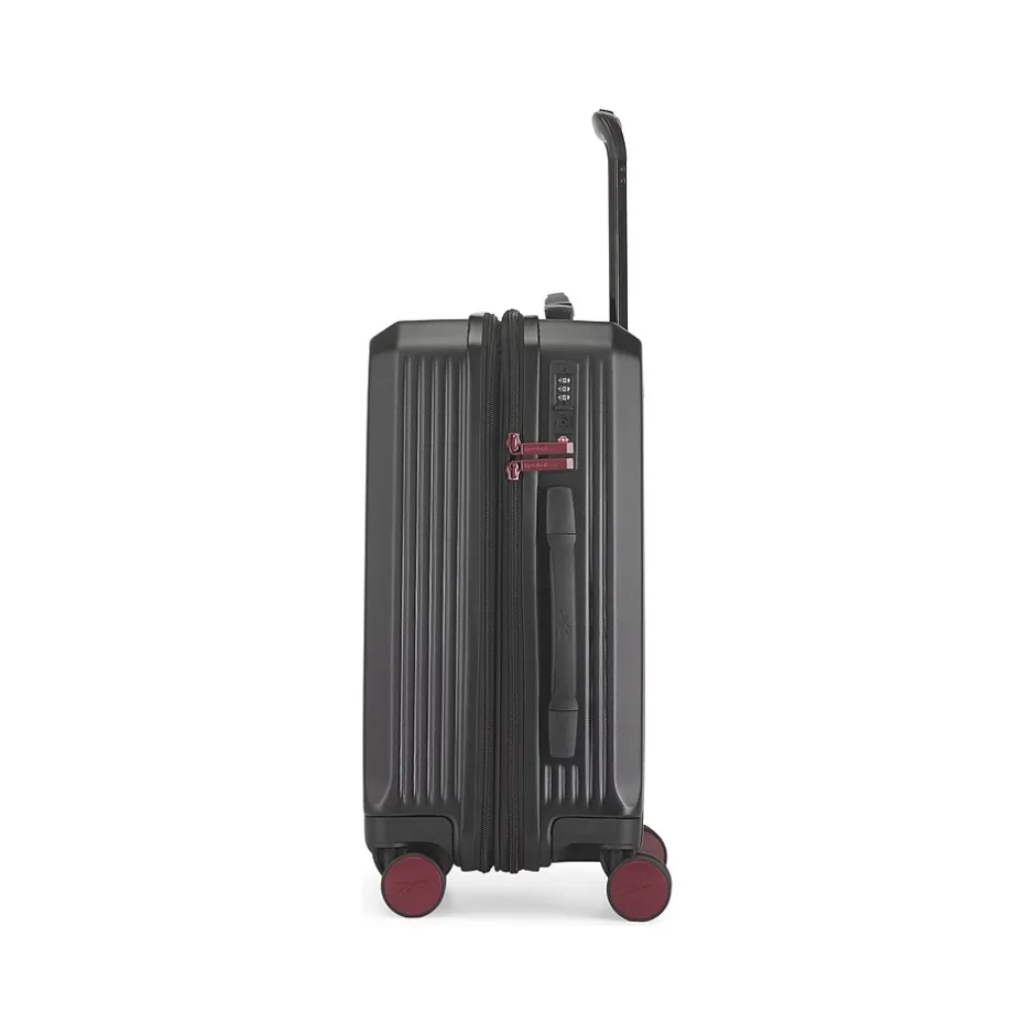 Introducing the Reebok Commitment carry-on luggage: your ultimate travel companion. Travel in style and convenience with this lightweight and resistant polycarbonate carry-on. Built to withstand the rigors of travel, the suitcase’s shock-resistant hard shell ensures your belongings stay safe and secure throughout your journey. With a TSA lock, you can rest easy knowing your valuables are protected. The side handle allows for effortless lifting, even when dealing with heavy loads. And thanks to the smooth retractable handle, navigating crowded airports has never been easier. Four double spinner wheels (eight wheels in total) glide effortlessly in any direction, ensuring smooth and stable maneuvering. Say goodbye to awkwardly dragging your luggage around. Need more space? The expansion system allows for a 20% increase in capacity, giving you the flexibility to pack more without worry. Inside, you’ll find a spacious interior, perfect for organizing your essentials and keeping them within easy reach. Whether you’re a frequent flyer or an occasional traveler, the Reebok Commitment carry-on suitcase is designed to meet your every need. So why settle for anything less? Upgrade your travel experience today.