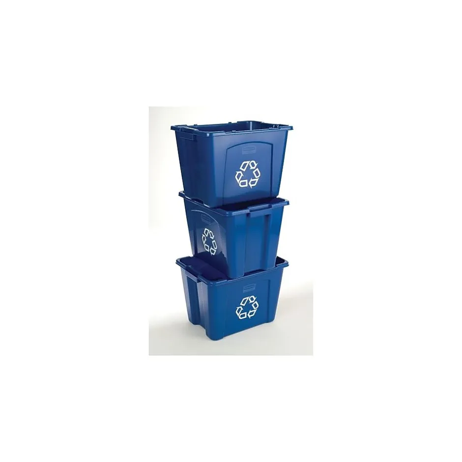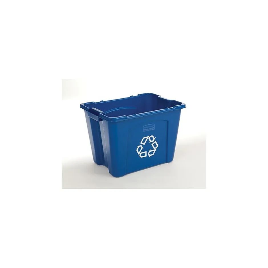 Recycling is easy with this 14-gallon blue recycling basket. This basket is made from plastic, measures 21 inches deep, and comes with handles for easy transport to the curb or your local recycling center. Good for indoor or outdoor use, this Rubbermaid recycling basket is also designed to nest or stack for easier storage.