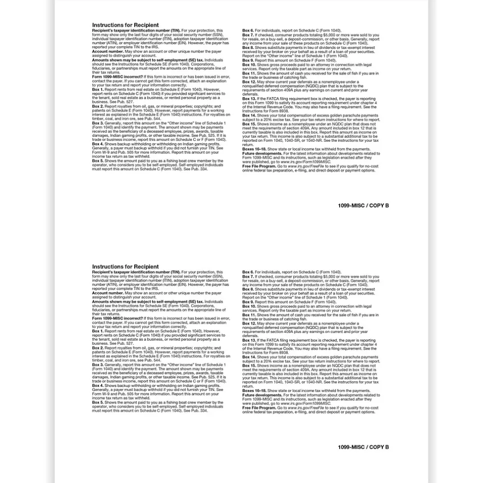 | Tax Form Pack Size | 1099-MISC |