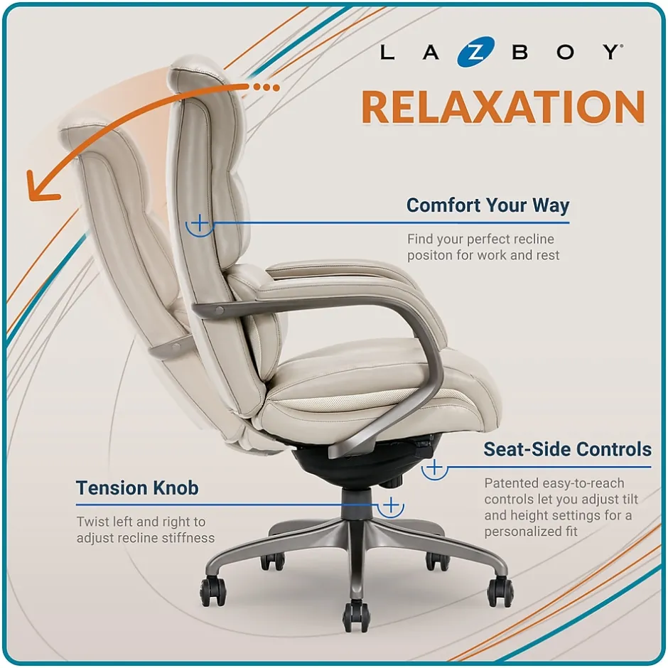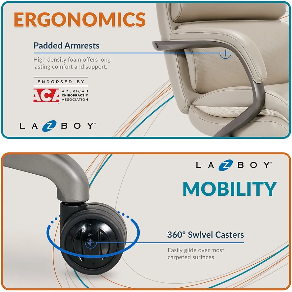 The La-Z-Boy Aberdeen executive chair is a stylish chair that maintains the comfort you would expect from La-Z-Boy. La-Z-Boy’s premier office seating comes standard with Comfort Core zoned technology for optimal firmness and lasting comfort. An advanced foam layering system is designed to offer deliberate, unique, and zone-based support.