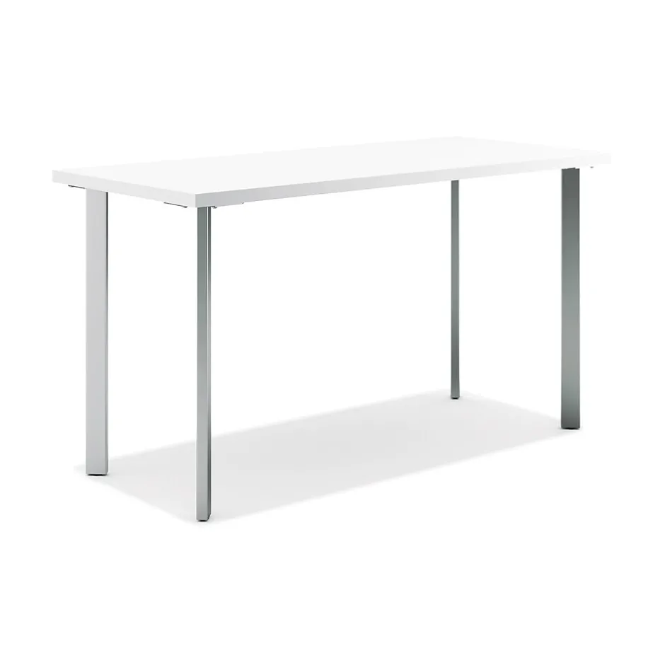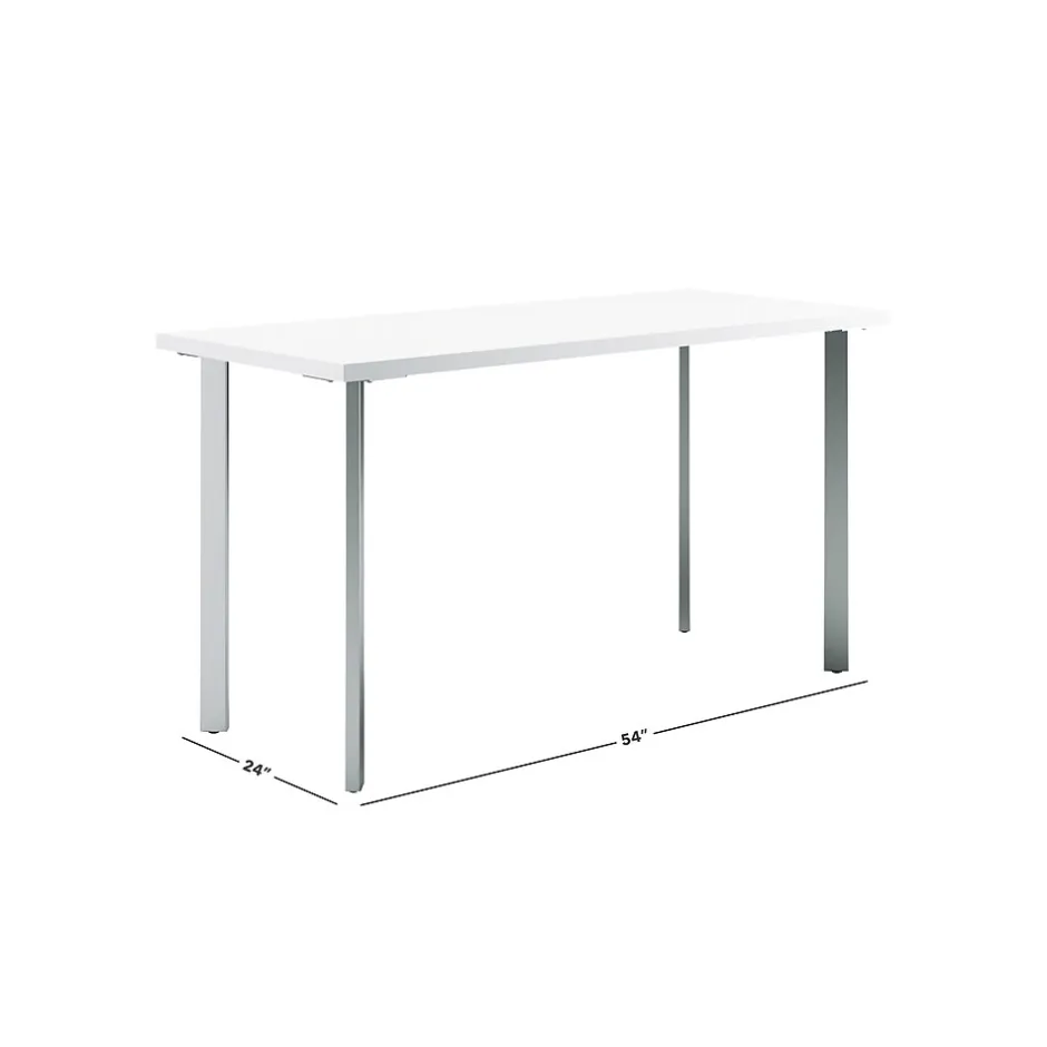 HON Coze Table Desk | 54″W x 24″D | Designer White Laminate | Silver Leg Finish