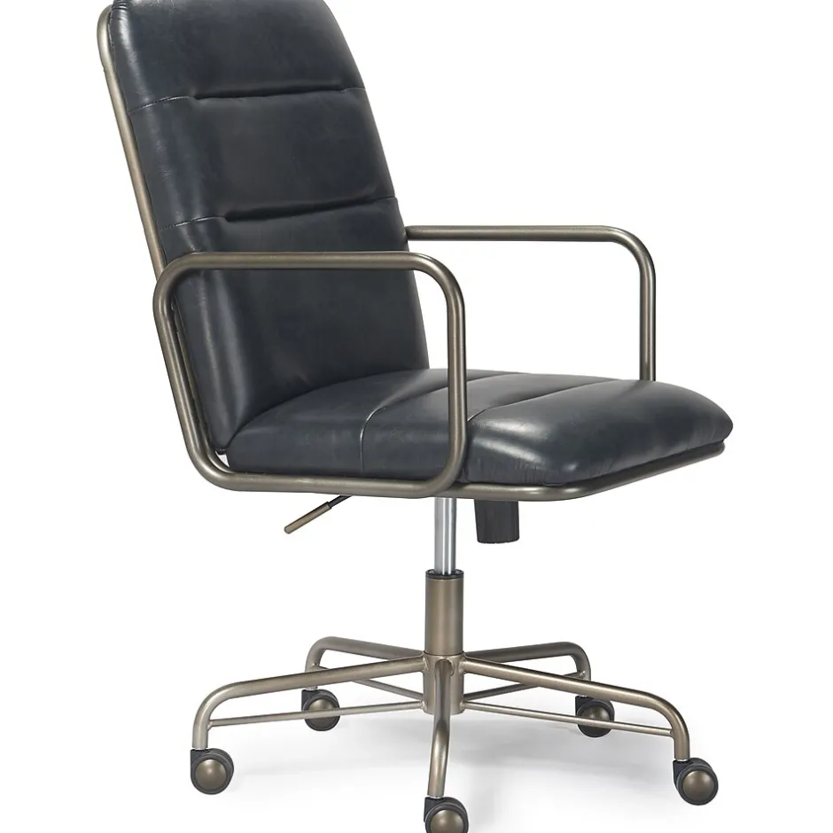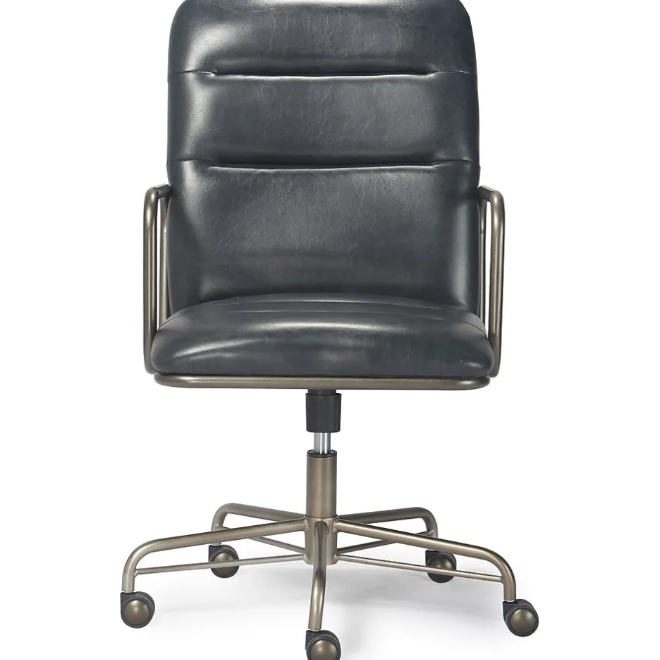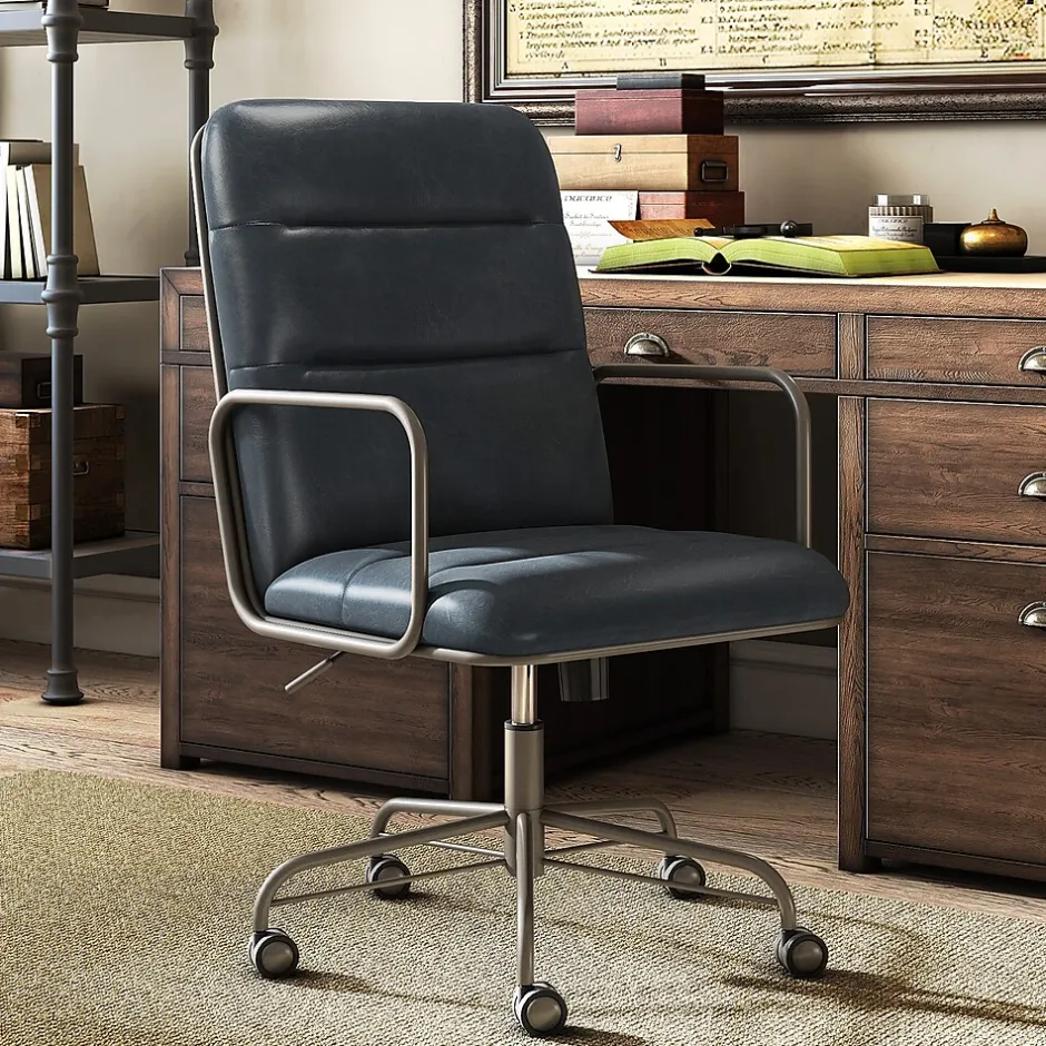 This comfortable office chair combines smart features with a mid-century modern design for a look that raises the style IQ in any work space. Created with sleek design in mind, the desk chair features rich executive-level bonded leather upholstery and a tube metal frame for a modern industrial look. It’s as comfortable as it is cool with ergonomic cushions and a padded high back for added support. With its adjustable height, recline, smooth rolling casters, and 360-degree spin, this Finch Franklin computer chair gives you the versatility you need to multitask.