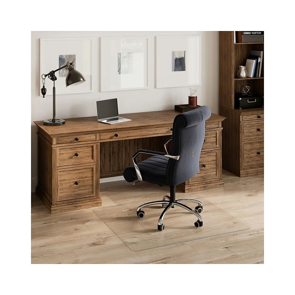 Extend the life of your hard floors by protecting against chair caster wear and tear. A perfect addition to your workspace, this Staples chair mat provides a smooth surface that enhances ergonomic comfort by allowing your rolling office chair to move freely. Made with durable vinyl that is GREENGUARD Gold certified for low chemical emissions to promote a healthier workspace. Designed for use on hard floor surfaces only, do not use on carpet.