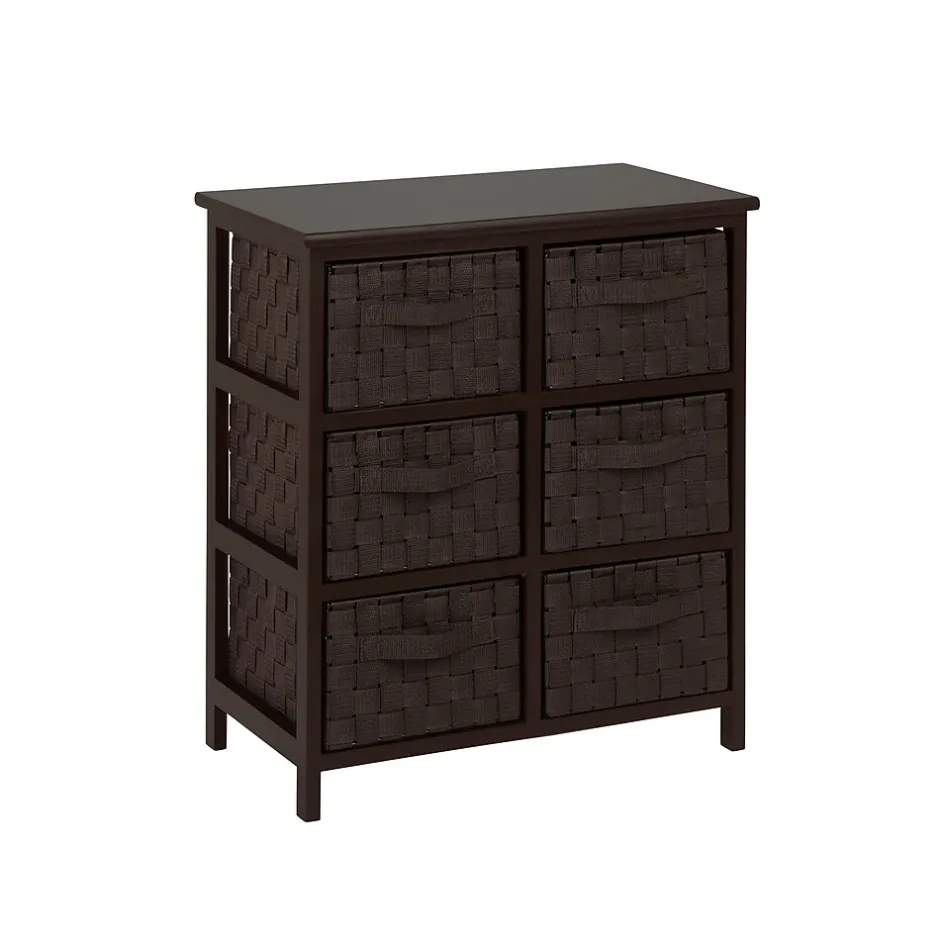 Honey-Can-Do TBL-03759 6-Drawer Storage Chest, Espresso Black. Getting organized has never looked better with this impressive double woven chest. This storage unit has six spacious drawers to hold clothes, tools, office supplies or anything else that needs tucked away. A natural wood top surface provides even more storage space and can double as a night stand. Coordinates with other pieces in Honey-Can-Do’s collection of double woven products.