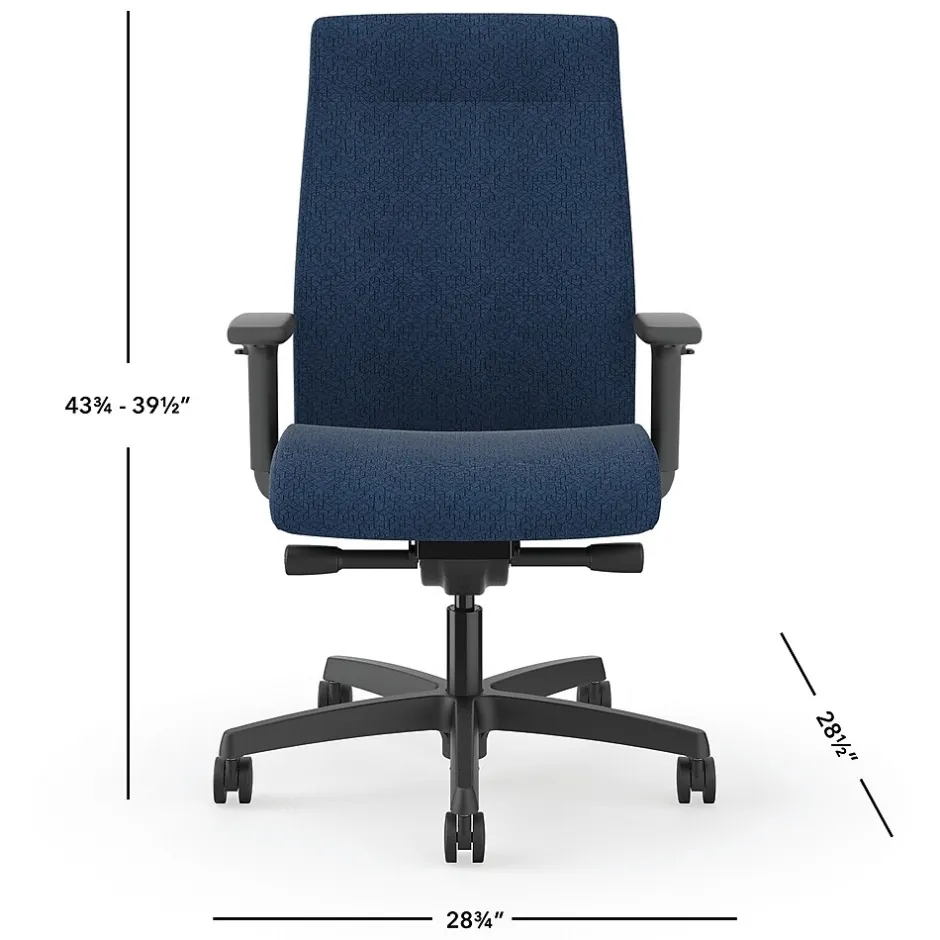 The advanced synchro-tilt control mechanism is the best HON has to offer, and reclines just the way you like. Height- and width-adjustable arms and adjustable lumbar support create the customizable comfort that perfectly fits you. A breathable 4-way stretch mesh back lets the air, and the comfort, flow freely. When you’re ready to take the next step up in task seating, look no further. Very easy assembly. 4-way stretch mesh back color is Black, seat fabric color is Black, and frame color is Black.