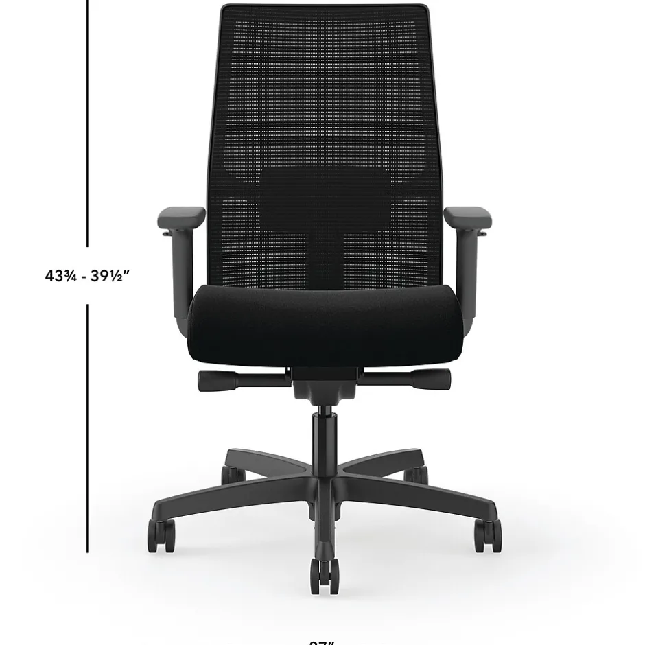 The advanced synchro-tilt control mechanism is the best HON has to offer, and reclines just the way you like. Height- and width-adjustable arms and adjustable lumbar support create the customizable comfort that perfectly fits you. A breathable 4-way stretch mesh back lets the air, and the comfort, flow freely. When you’re ready to take the next step up in task seating, look no further. Very easy assembly. 4-way stretch mesh back color is Black, seat fabric color is Black, and frame color is Black.