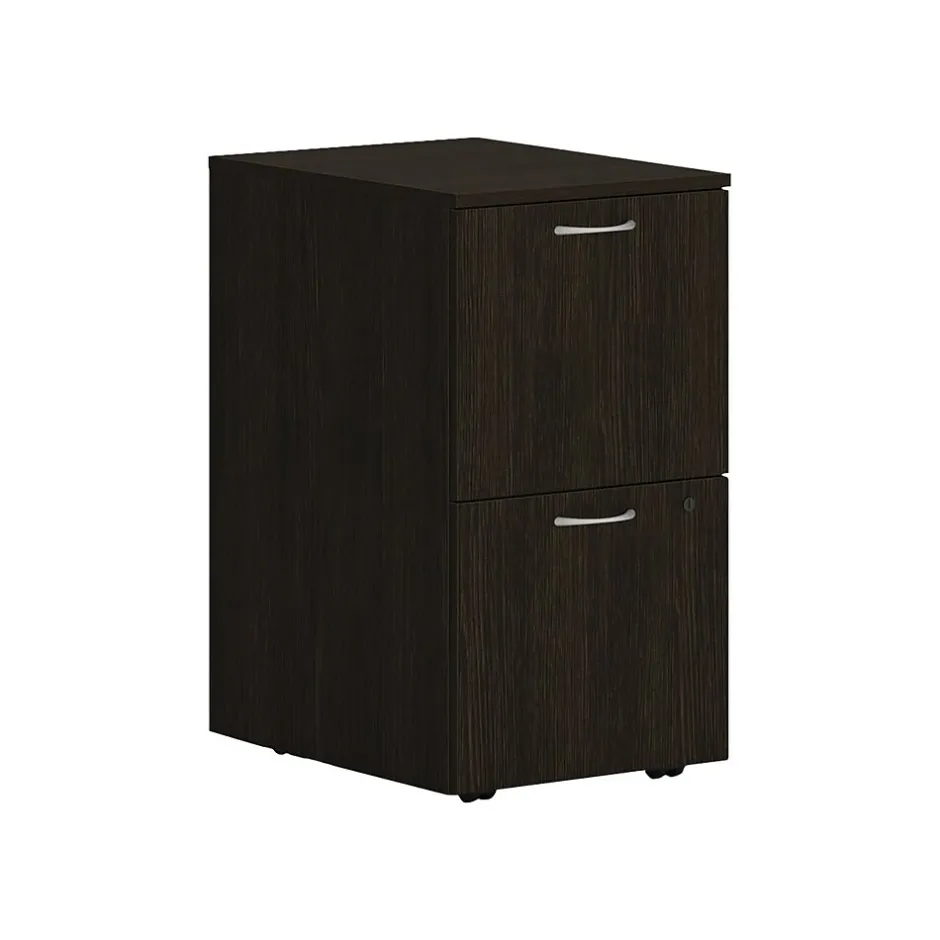- Two-drawer mobile pedestal cabinet holds letter- or legal-size documents