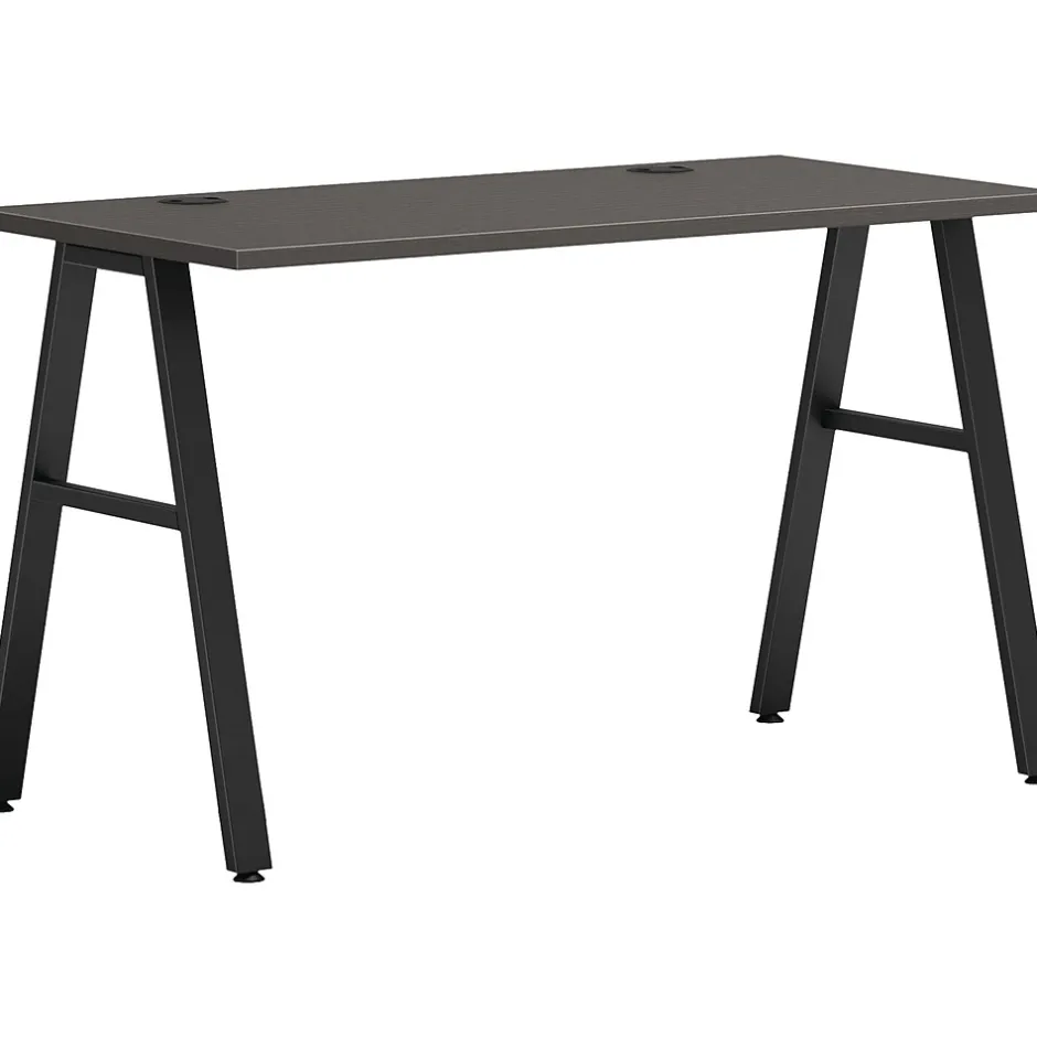 There is always beauty in simplicity, but with the HON Mod desk collection, you’ll also find variety and value. This table desk features a 48″W x 24″D work surface sitting atop A-frame legs. The durable laminate surface is available in a variety of attractive finish options, which allows you to mix and match with other Mod elements. It’s totally productive. Totally adaptable. Totally Mod. The laminate finish is slate teak, and the A-leg color is black.