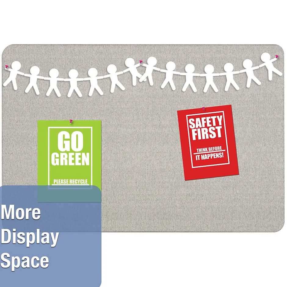 Create a central place to keep important company information, updates, and more with this Quartet Oval Office fabric bulletin board. This board features a gray fabric surface backed by high-density fiberboard and a frameless design that provides more usable space. The backing is water-resistant and firmly holds pins in place. This 3′ x 2′ board comes with mounting hardware and offers vertical or horizontal configuration.