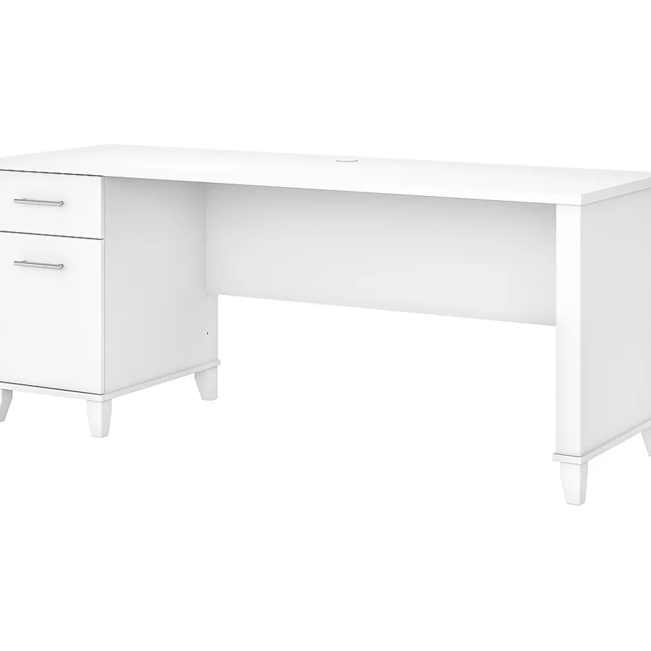 An expansive work surface and built-in storage make the Bush Furniture Somerset office desk with drawers a perfect choice for your home office. The spacious desktop offers plenty of room to spread out with a computer and paperwork and includes a wire management grommet to keep cords and cables secure and out of sight. The desk’s file drawer opens on full-extension ball bearing slides for easy access to legal- and letter-size documents, while a box drawer keeps the office supplies and utensils you need close by. A finished back side allows the desk to look great no matter where it’s positioned in the room. The office desk with drawers meets or exceeds ANSI/SOHO standards for safety and performance and is backed by a 6-year manufacturer limited warranty.