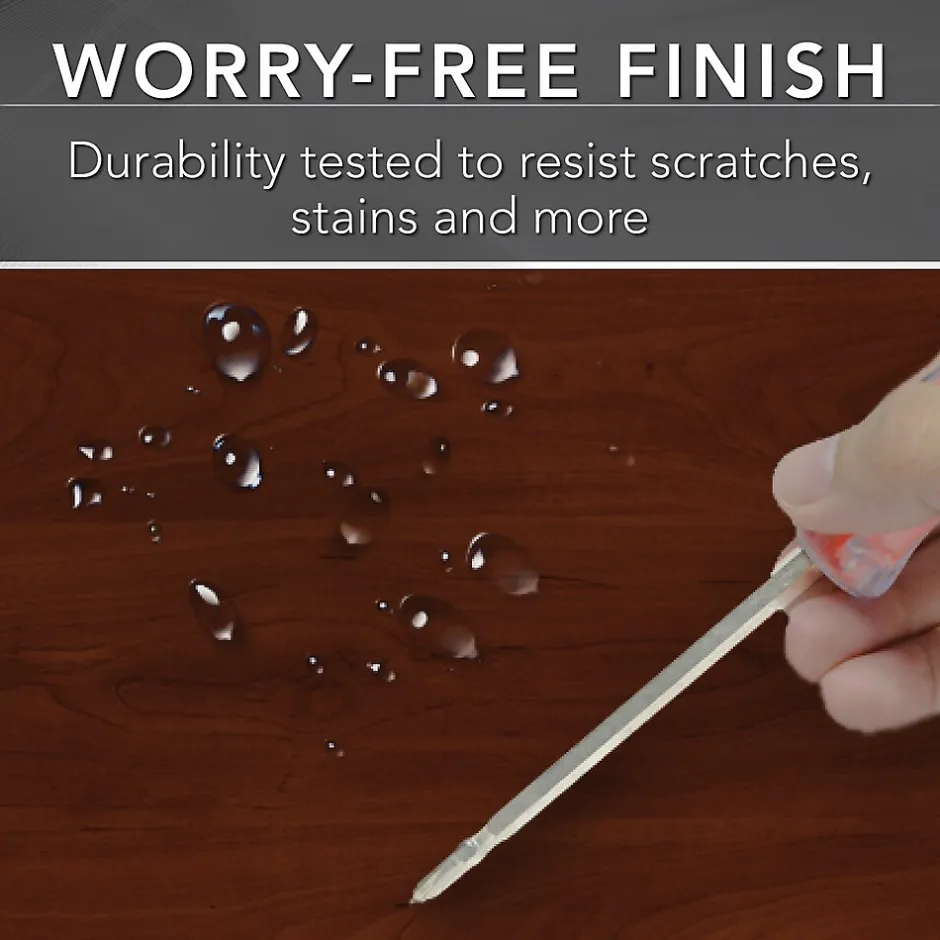 - Thermally fused laminate finish fends off scratches and stains to protect the office furniture set