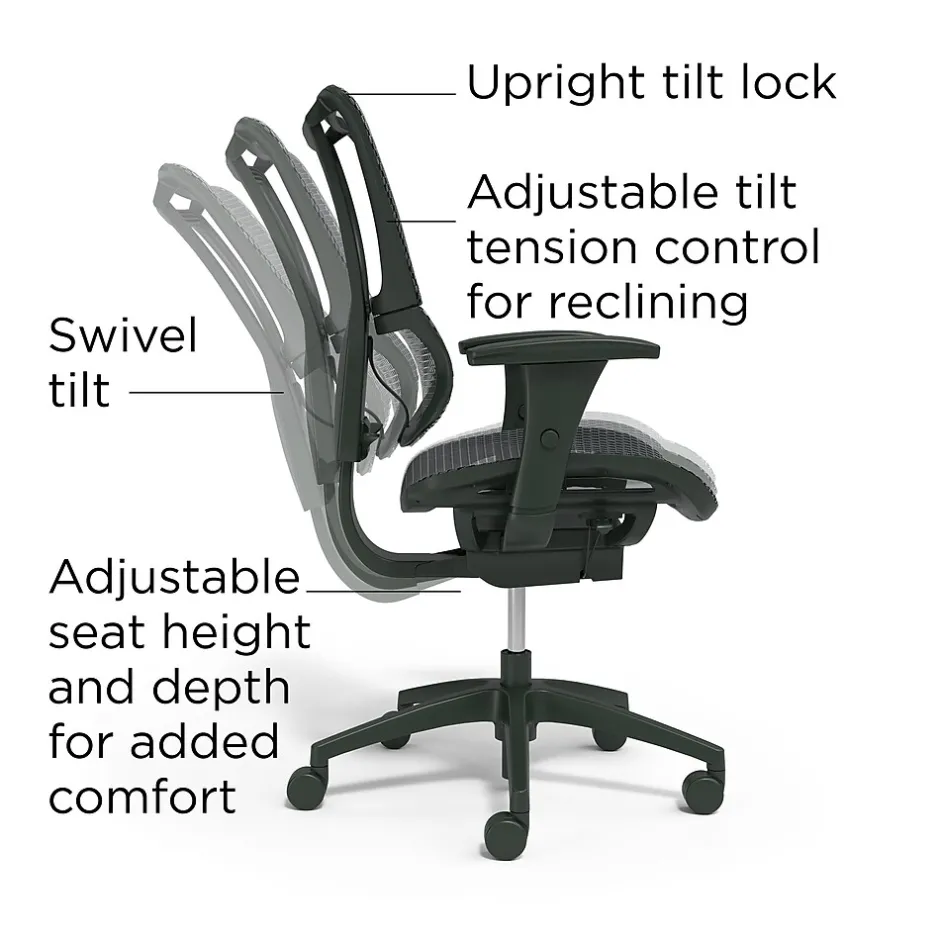 - Lumbar support, seat height adjustment with tilt tension, and tilt lock offer customized comfort