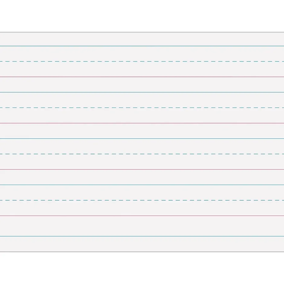 - Bright tablet paper ruled both sides with red baselines, blue dotted midlines and blue headlines