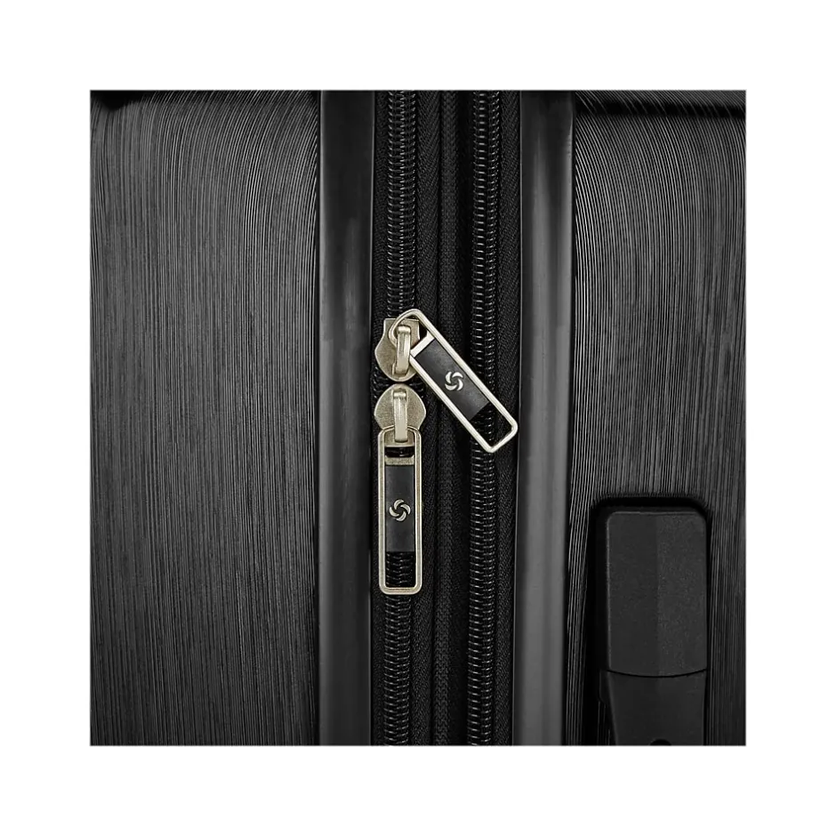 The Samsonite Alliance SE carry-on spinner in a boxy yet modern design will never go out of style. The extra packing volume allows maximum packing capacity for the extended short journey. The butter-smooth rolling dual spinner wheels, simple yet functional interior with two-sided silky soft mesh dividers, and overall case expansion accommodate for extra packing needs, all complete with a highly scratch-resistant texture for the maximum durability.