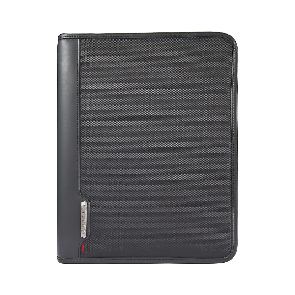Keep all of your business essentials organized with this Samsonite stylish and compact padfolio. It offers organization for folders, business cards, phone, and tablet. Includes a writing pad and pen loop holder. Features 1″ three-ring binder and secure inner zipper pocket. Made of ballistic fabric with vinyl trim, this classic padfolio comes in steel gray with matte gunmetal textured logo on it and has a 3-year manufacturer limited warranty.