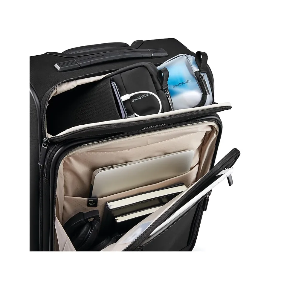 - Features a durable polyester soft-side exterior in black color
