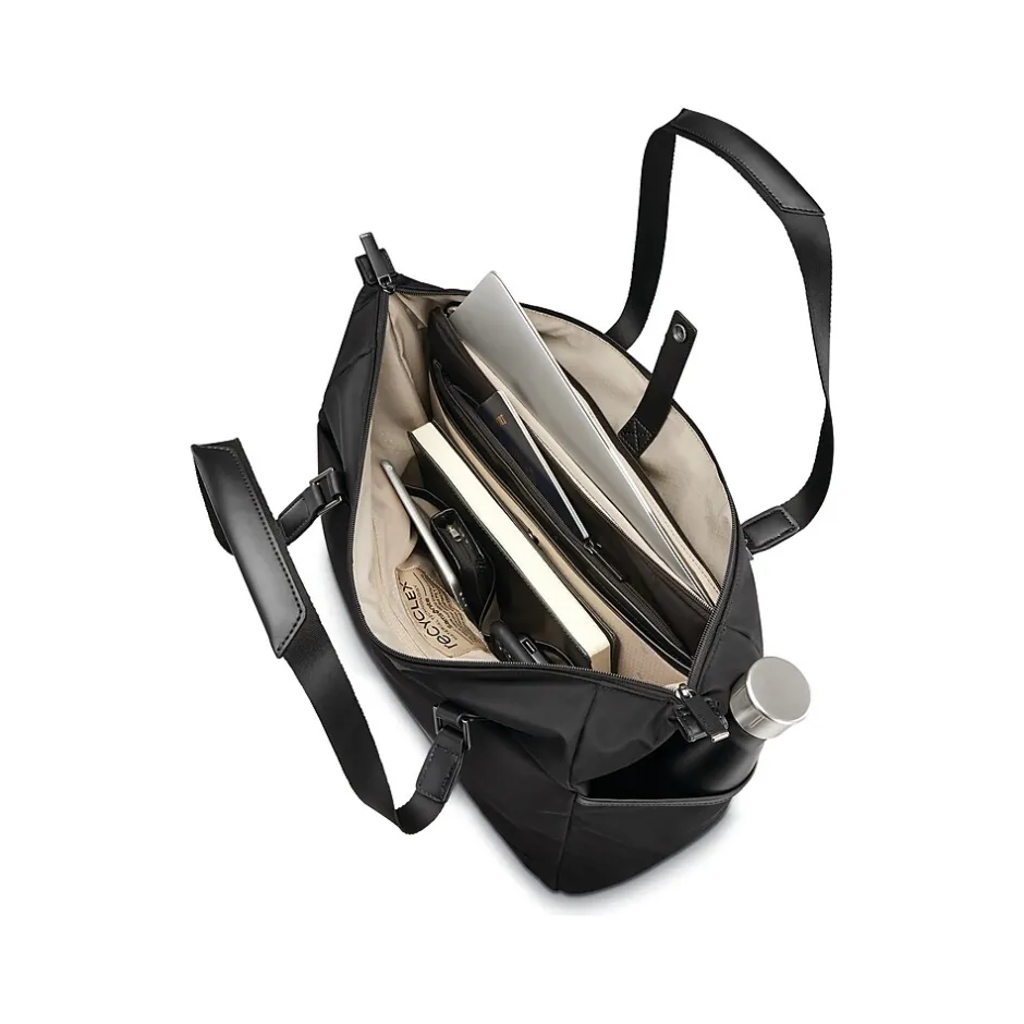 The Silhouette 17 tote bag is an update to Samsonite’s long-lasting collection for global executives. Reimagine travel with this add-on bag. The carry-all tote features a removable deluxe laptop portfolio and 360-degree organization that takes you from business meeting to your next destination.