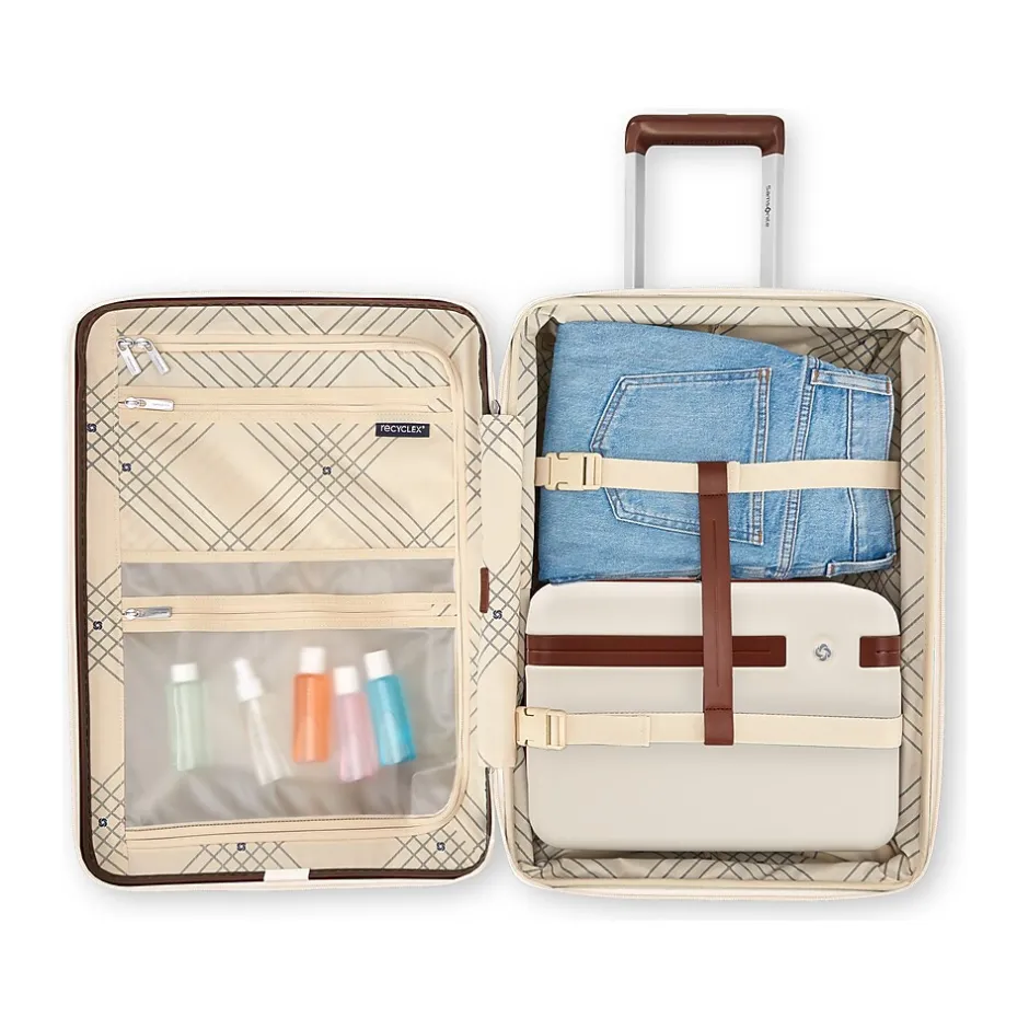 - Includes a zippered lining pocket, lay-flat compression straps, and custom recycled RPET interior lining