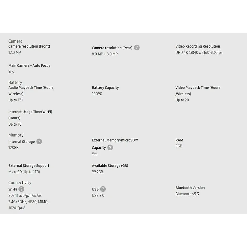| Connectivity (Wireless) The type of processor the tablet has. | Samsung Exynos 1380 (S5E8835) |