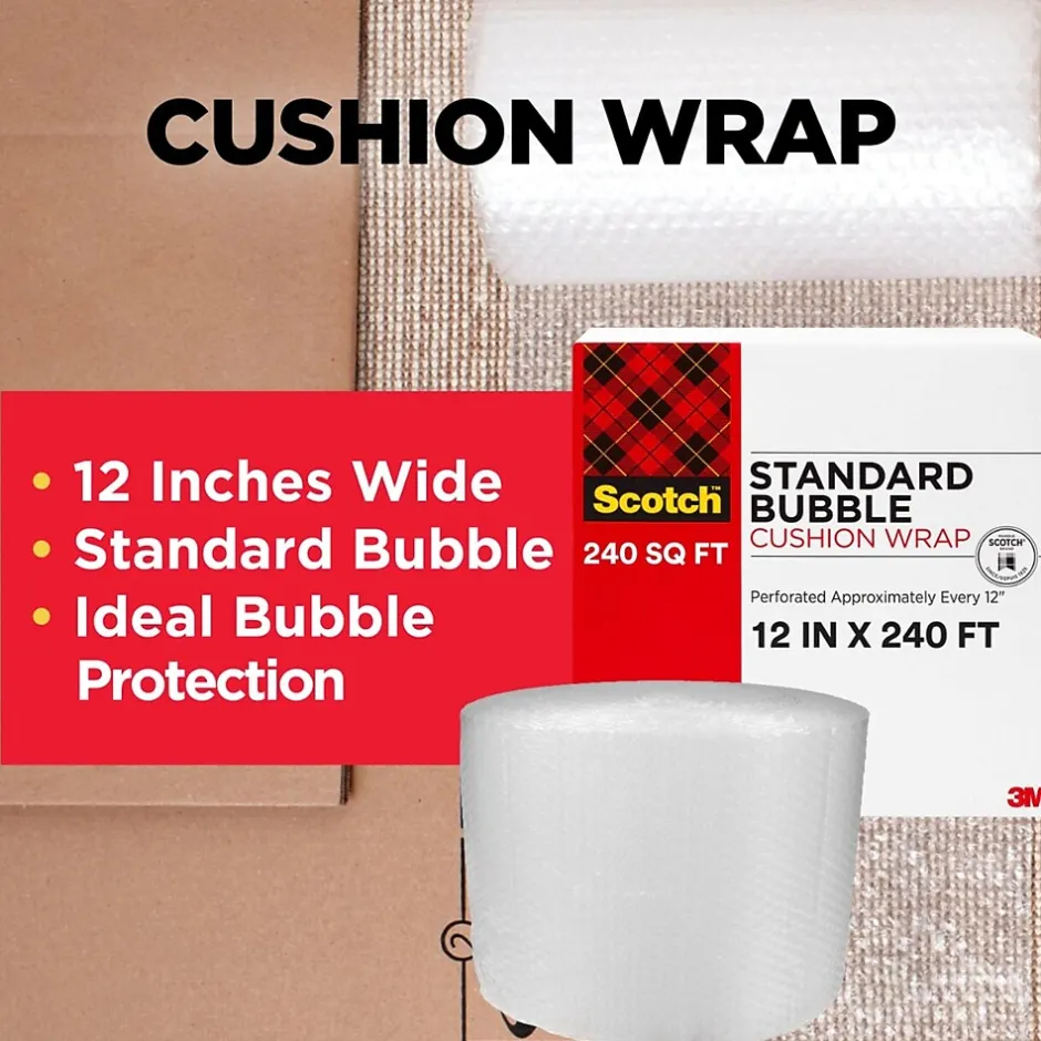 Scotch Cushion Wrap is an ideal solution to provide cushion protection for valuable and delicate items during mailing, shipping and storage. Use this lightweight packing solution that is neat, clean, non-scratching and recyclable. Great to use for shipping gifts to loved ones and packing up valuable items for a move. Ideal for use when putting delicate items or other valuable items in storage for later use. For convenient packing, the roll is perforated every 12 inches for easy tearing. Roll is 12 in. x 10 ft.