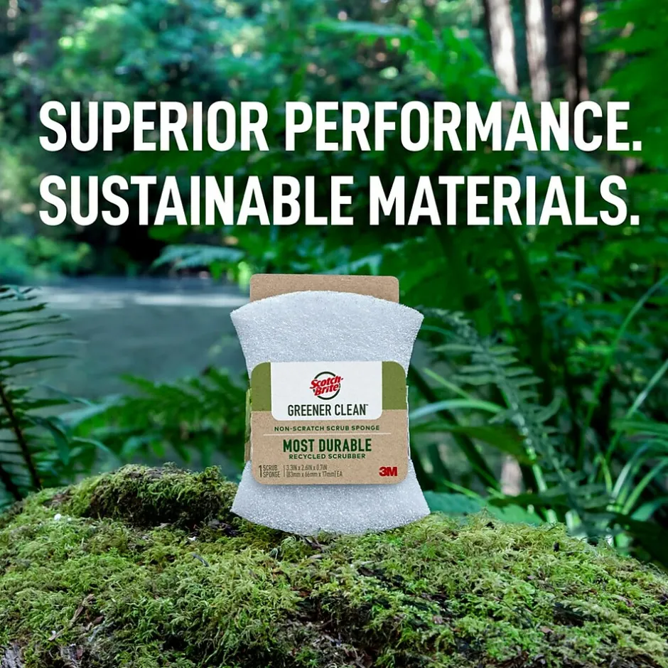 - RECYCLED DISH SPONGES: One 3-pack of Scotch-Brite Greener Clean Non-Scratch Scrub Sponges, kitchen sponges made with 100% recycled scrubbing fibers so you can make a difference with every clean