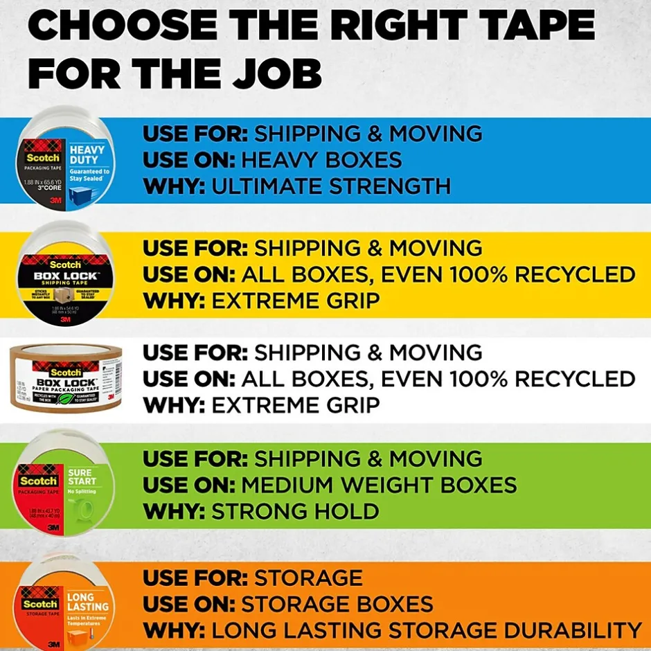 - Guaranteed to Stay Sealed* (*If your box does not stay sealed, 3M will refund the purchase price of this tape. Proof of purchase required. Contact: 1-800-3MHELPS)