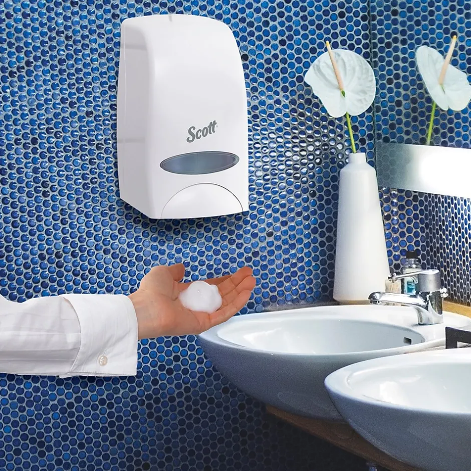 Help create a healthier office environment with this foam skin cleanser refill. It kills harmful germs to keep sickness at bay and contains 0.1% Benzalkonium Chloride to kill harmful germs such as Listeria, Staphylococcus epidermidis and Salmonella. Replenish the bathroom soap dispenser with this easy-to-use 33.8 oz. Scott Control skin cleanser.