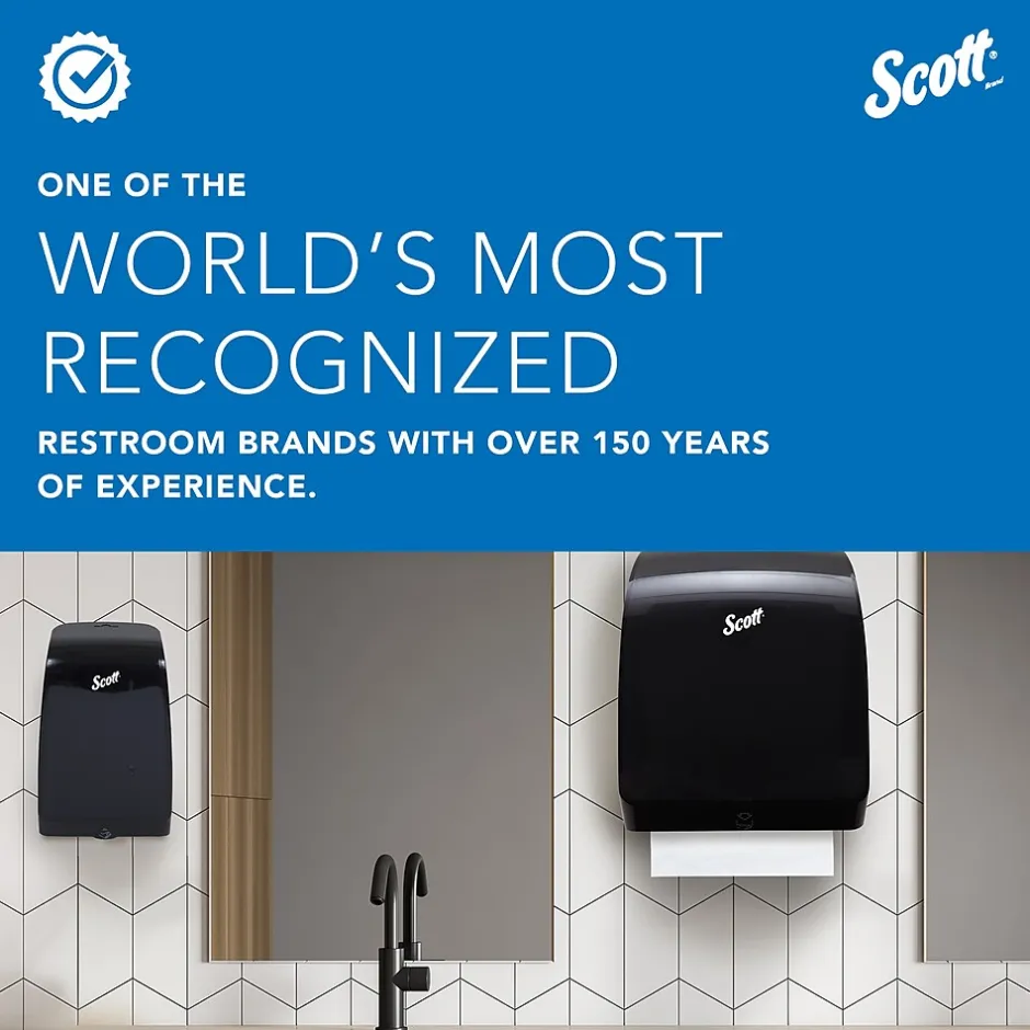 Support sustainable initiatives with Scott Essential recycled fiber toilet paper rolls. The soft texture offers personal comfort, while the two-ply construction delivers both strength and absorbency. Each roll is individually wrapped for added hygiene, and the cored rolls fit neatly into standard dispenser systems. With 80 rolls per case, these Scott Essential recycled fiber toilet paper rolls make it easy to stock each restroom stall for a reliable supply of tissue when it’s needed most.