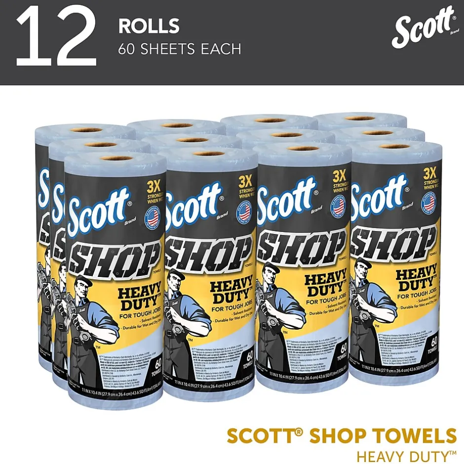 - 60 Towels/Roll; 12 Rolls of Scott® Shop Towels Heavy Duty™/Case; 720 Towels/Case; Blue Shop Towels for Solvents and Heavy Duty Jobs; 10.4″x11″ sheets