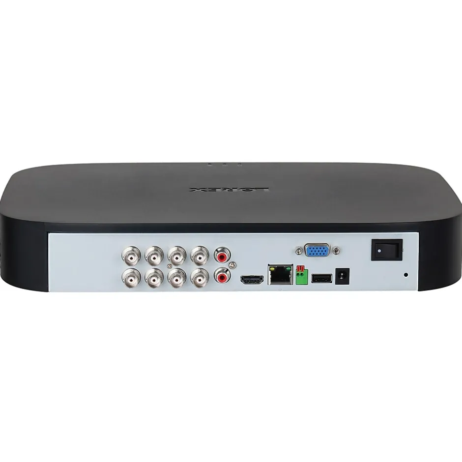 - DVR supports up to 8 cameras; security-grade hard drive expandable to 8 TB