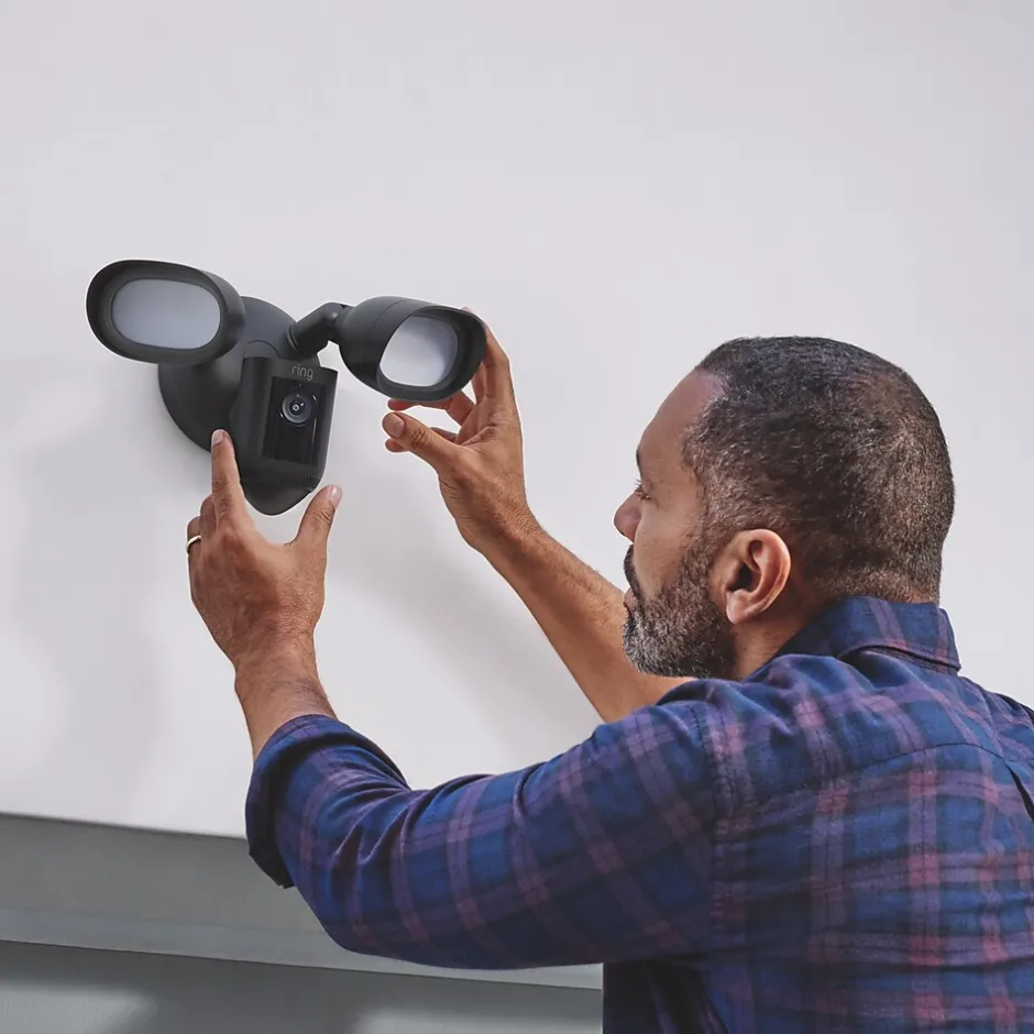 Upgrade your outdoor security with Floodlight Cam Wired Pro. Stop crime in its tracks with ultra-bright LED floodlights. Stay protected in almost any weather condition with our new 3D Motion Detection, and monitor motion events from above with Bird’s Eye View. Get more accurate, real-time notifications when motion is detected around your home. Use the Ring App to see what’s happening, turn on the lights, speak to visitors with improved noise reduction and crisp Audio+, and sound the siren when you need to. It also comes with a free 30-day trial of Ring Protect Plus, so you can review, save and share all your Ring videos at anytime, with anyone.