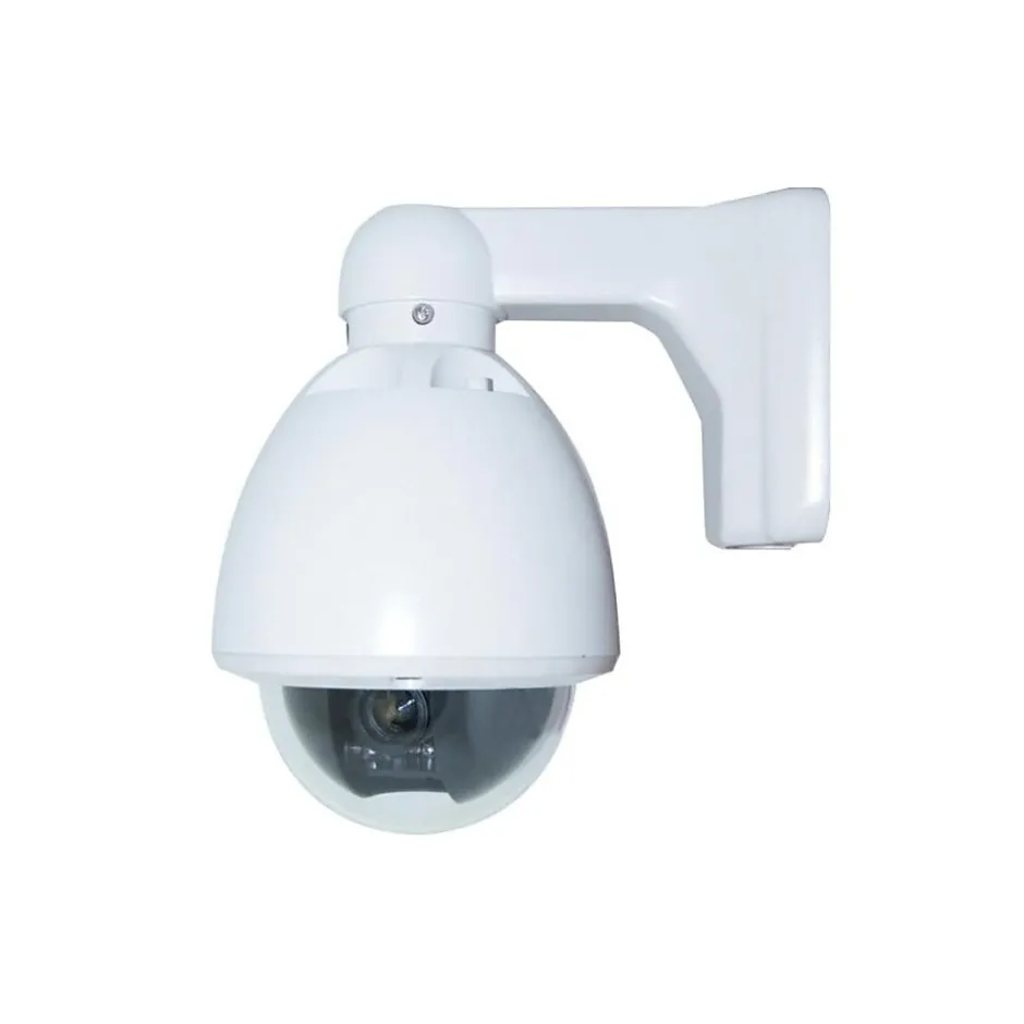 SeqCam SEQ7503 professional multipurpose mini speed dome security camera is loaded with Sharp CCD technology and vandal-proof, weatherproof, three-axis bracket internal system. This camera features a 650-line high resolution for better monitoring. Users can manually adjust the lens for a different angle of view and remote control the camera when properly connected to a compatible DVR with Internet access.