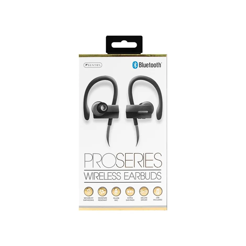 Experience high-performance audio with these Sentry Pro Series on-ear headphones. The 10-millimeter drivers deliver rich bass, midrange and treble for a high-quality listening experience, while the Bluetooth capability allows for connection with a wide array of devices. These Sentry Pro Series on-ear headphones have no wires to deliver freedom of movement, and the flexible ear hooks help ensure an optimal fit.