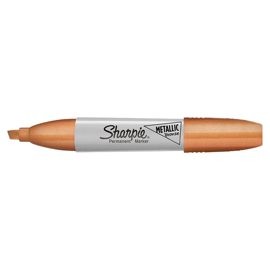 Get your shine on with Sharpie Metallic permanent markers. With a versatile chisel tip, create fine lines and thick marks with major style. Stand out in a crowd by using these metallic permanent markers for hand-lettering, coloring, labeling, and crafting. Each permanent marker is made with specially formulated ink designed to be quick-drying and fade- and water-resistant. Every mark boldly stands out on light and dark surfaces, meaning they’re perfect for projects on a black background.