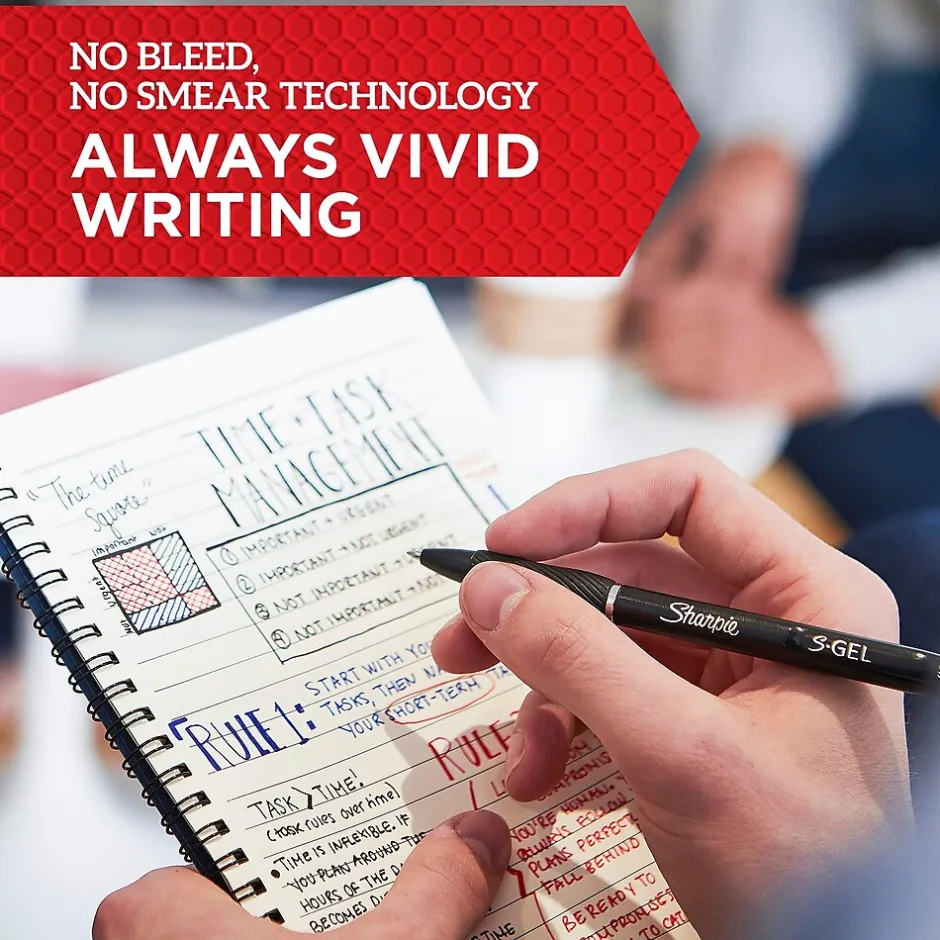 Sharpie S-Gel features no-smear, no-bleed technology to deliver an exceptional writing experience. The pen features intensely bold color for always-vivid writing, while the contoured rubber grip provides a comfortable writing experience during any task. Its sleek design and matte finish make it a pen you’ll be hesitant to loan out. Sharpie S-Gel offers a smooth writing experience at home, at school, or in the office.