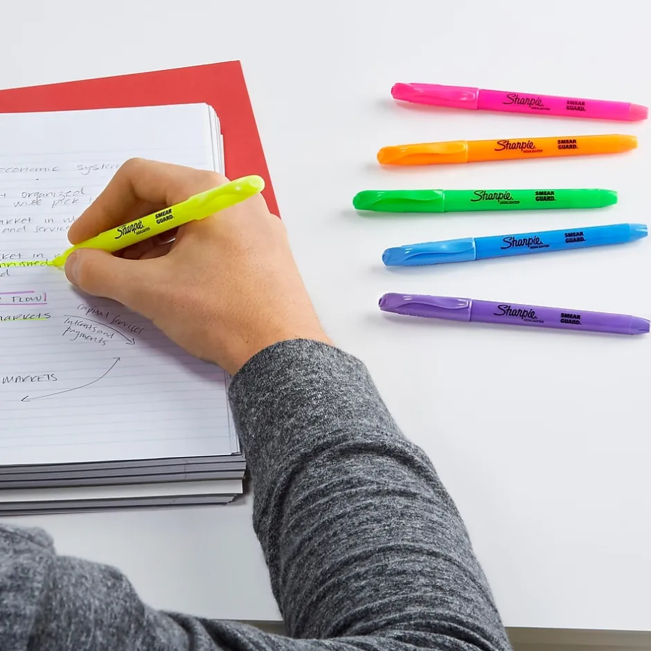 Perfect for when info is high priority and precision is a must, Sharpie Pocket Highlighters make everything highly visible. These versatile highlighters are designed to fit effortlessly in your pocket or clip to your shirt, so they’re easy to take with you anywhere. With brilliant colors in transparent, quick-drying ink and an easy gliding chisel tip that highlights and underlines both wide and narrow lines of text, Sharpie highlighters make your most important thoughts and notes jump off the page in an array of easy-to-read shades. It’s no wonder why Sharpie is the gotta have highlighter for travel itineraries, camping checklists, escape plans, and the rest of life’s major high points.