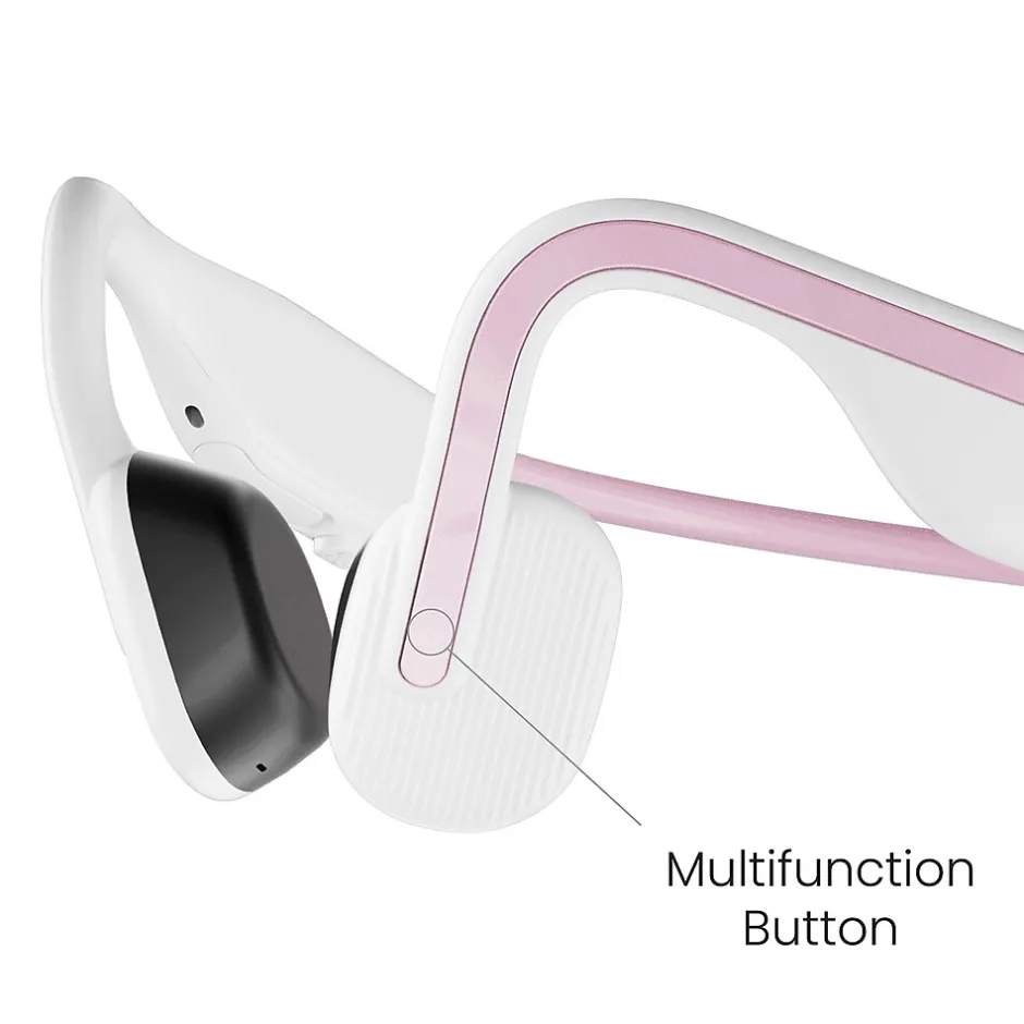 New to the world of open-ear listening? OpenMove headphones offer a great introduction to all Shokz patented bone conduction technology has to offer at a cost-effective price! Inspired by athletes yet designed for everyone, the Shokz OpenMove Bone Conduction Lifestyle Bone Conduction Headphones are made to move you. Unlike traditional in-ear headphones, OpenMove features the signature Shokz open-ear design that keeps you tuned in to your music and your moments. The lightweight, titanium fit of these Pink open ear headphones makes it easy to move through your day with versatility.