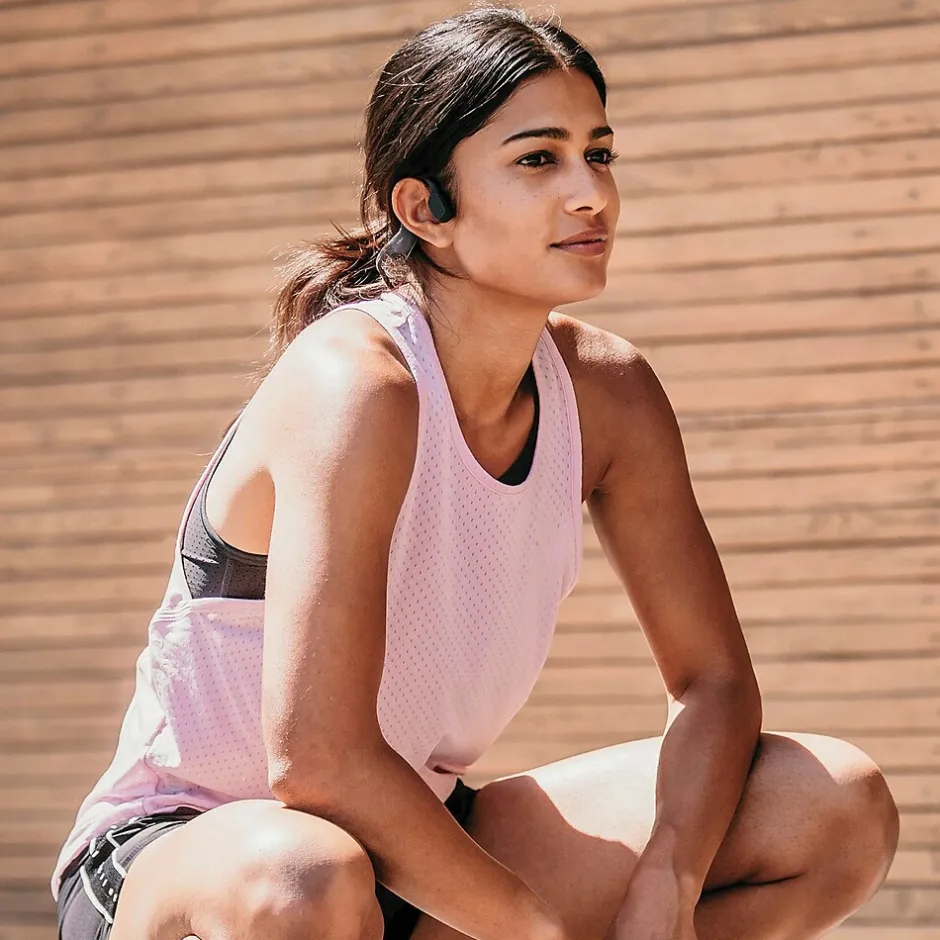 Redefine your possible with Shokz OpenRun Mini bone conduction headphones! Formerly called Aeropex Mini, these open ear headphones are designed for endurance athletes. OpenRun Mini has a titanium band that is approximately 1/2 in. shorter than the standard OpenRun size yet still has all the same innovative features. The smaller band makes this an ideal fit for those who enjoy a more snug size. Unlike traditional in-ear headphones, OpenRun Mini features the signature Shokz open-ear design to keep you tuned in to your music and your outside moments. The enhanced audio on these wireless sport headphones features ensure clear sound, powerful volume, and a rich bass while you’re listening. OpenRun Mini Bluetooth headphones are both lightweight and durable for comfortable all-day use. And they can also withstand the elements. Their IP67 waterproof rating makes OpenRun Mini ideal for sweaty and rainy workouts, although they are not designed for underwater swimming. Embrace a new challenge with these Black sport headphones powered by Shokz.