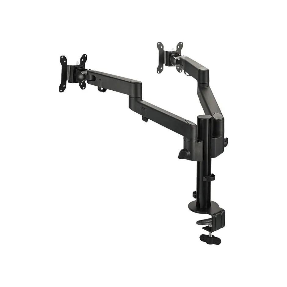 Heavy duty multi-adjustable articulating arm dual monitor desk mount supports up to two 14-inch to 30-inch monitors weighing up to 17.6lbs each.