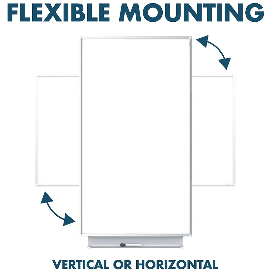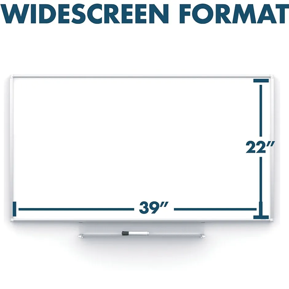 The Quartet® Silhouette™ Total Erase® Dry-Erase Board offers superior erasability for exceptional ghost and stain resistance. Slim frame design appears to float on the wall for a modern, minimalist look. Widescreen format with 16:9 aspect ratio. Simple to install with pass-through mounting. Hang vertically or horizontally. Board includes an accessory tray and a Quartet dry-erase marker. Limited 3 year warranty.