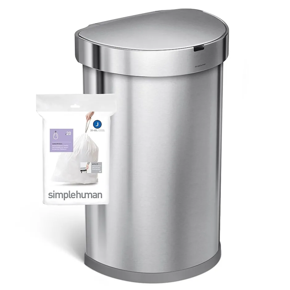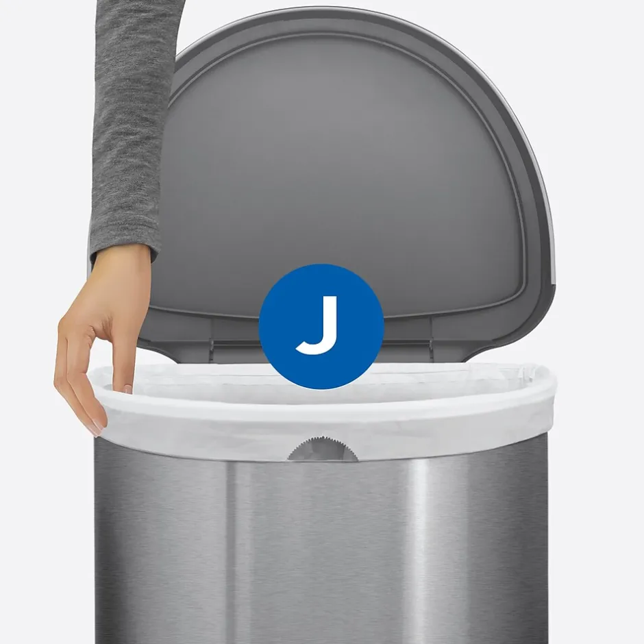 Install these custom-fit liners in your simplehuman trash can for a perfect, slip-proof fit. The custom liners are hidden when the lid is closed, and strong plastic and durable double seams prevent rips and tears, making it easy to take out the trash. Simplehuman code J liners have a capacity of 8 to 12 gallons and come in four 60-count dispenser packs, so you can easily grab just one at a time.