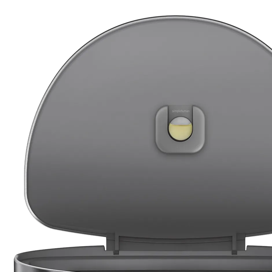 - Silent close lid – The simplehuman patented lid shox® technology controls the motion of the lid for a slow, silent close.