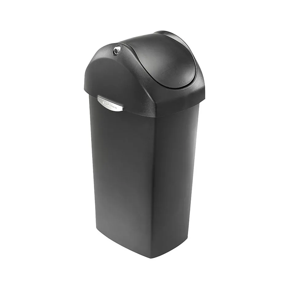 - Balanced swing lid – Center-weighted swing lid opens easily and then gently swings back into place.