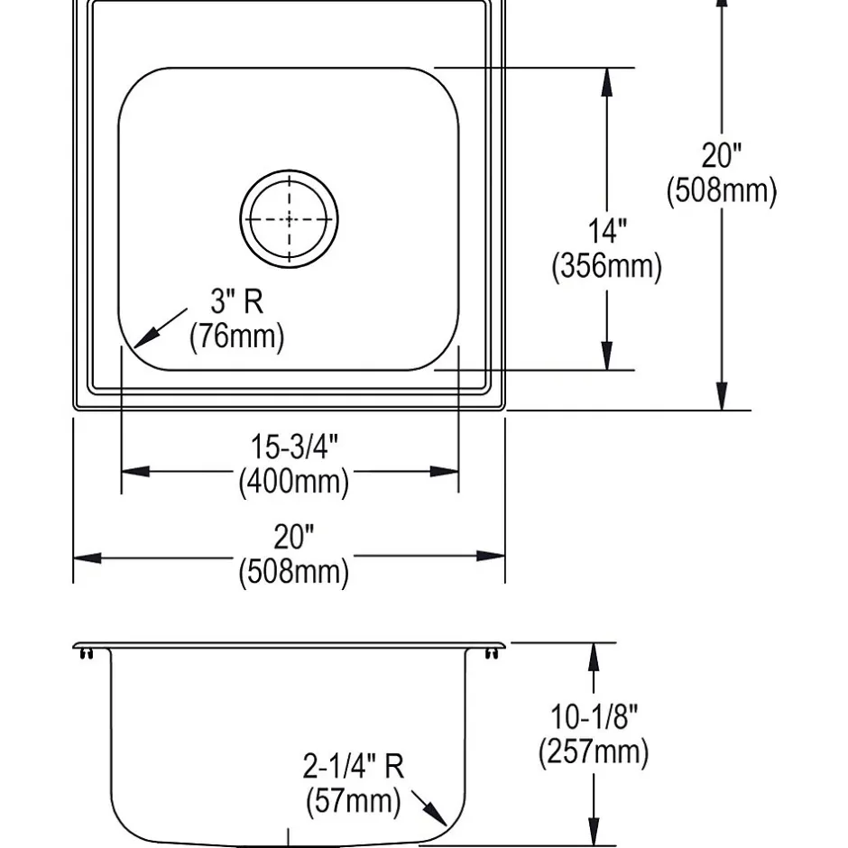 Elkay Dayton Stainless Steel 20″ x 20″ x 10-1/8″, Single Bowl Top Mount Laundry Sink DPC12020101