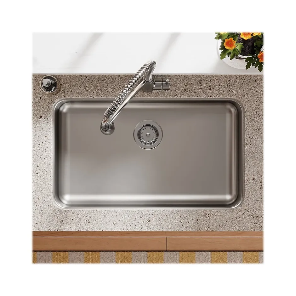 The Elkay Lustertone Classic stainless steel single-bowl undermount sink looks as great on day 3000 as it does on day one. The rich, uniform grain is scratch-resistant for heavy-duty use, whether it’s a kitchen sink or a prep, bar, laundry, or commercial sink. Light scratches, which occur with everyday use, naturally blend into the finish of this durable sink with time. Deeper scratches are repairable with the Elkay stainless steel restoration kit.