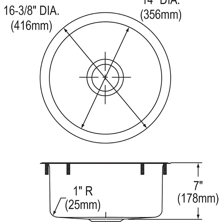- DRAIN OPENING: Sink drain opening measures 3-1/2″.