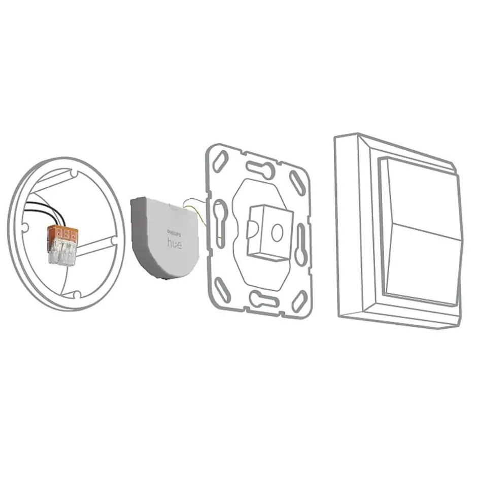 Installed behind light switches, the Philips Hue wall switch module lets you use existing switches with your Philips Hue smart lights. Your lights always stay powered on and reachable – and you can even use the switch to set multiple scenes on an individual light.