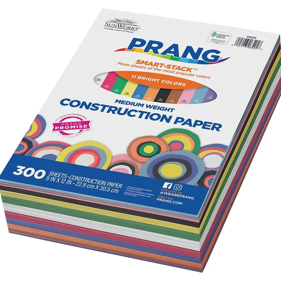 - Prang® Smart Stack™ construction paper in assorted colors with extra sheets of the most frequently used colors are perfect for school projects, arts & crafts, or just doodling